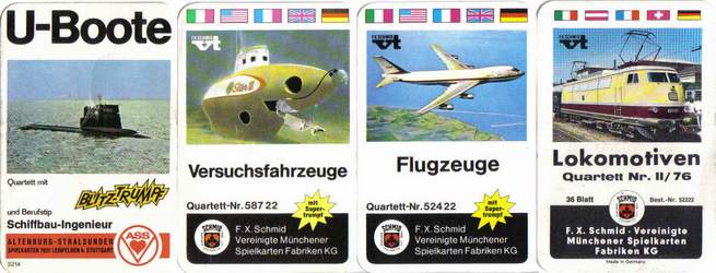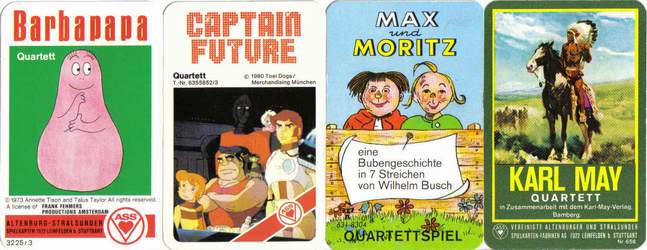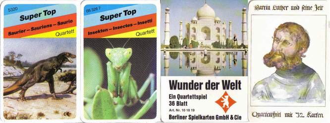 Zu fast jedem Thema sind Quartette vorstellbar. Besonders beliebt sind Fahrzeuge aller Art. Da diese Spiele primär für Kinder herausgegeben werden, dürfen natürlich Kinderfiguren nicht fehlen. Bei anderen Karten soll spielerisch Wissen vermittelt werden. Diese gehören ebenfalls in die Gruppe der Lernspiele. Vor allem bei neueren Quartetten gehört ein Deckblatt dazu. Ohne dieses ist das Spiel nicht vollständig und vom Sammlerstandpunkt viel weniger wert.