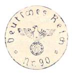 1903 - 1919Die Ergebnisse der Rechtschreibkonferenz vom Juni 1901, berücksichtigt im Duden 1902, wurden als "SZ" bei DREISZIG PF. wirksam. Der Übergang erstreckte sich wieder über einen längeren Zeitraum. Nach 1912 waren auch Stempel mit der Farbe lila im Gebrauch. |