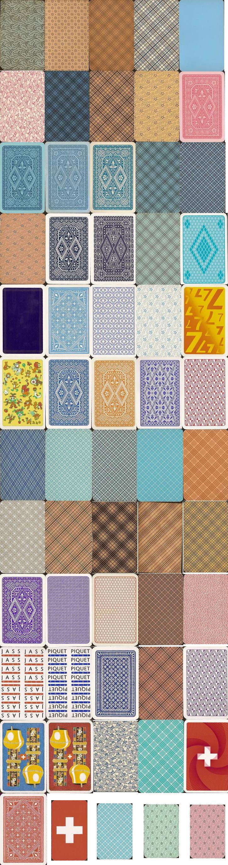 Identifikation des HerstellersHaben Sie ein Kartenspiel mit einem der beiden Schweizer Bilder und Sie wissen nicht von welchem Hersteller? Anhand eines Vergleichs der Rückseite haben Sie eine gute Chance diesen zu eruieren. |