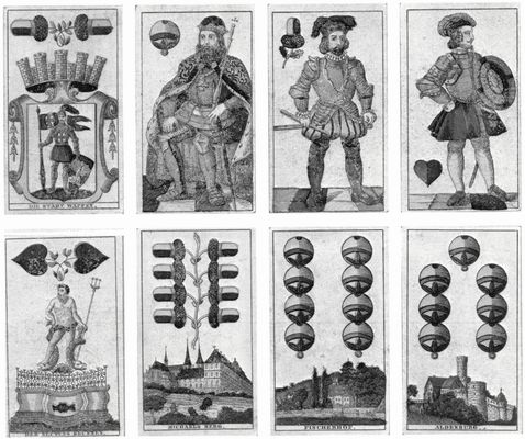 Deutsche Spielkarten 1650-1900. Katalog der Spielkarten mit deutschen Farben Germanisches Museum Nürnberg. Sigmar Radau, Gerd Matthes, 2001 |