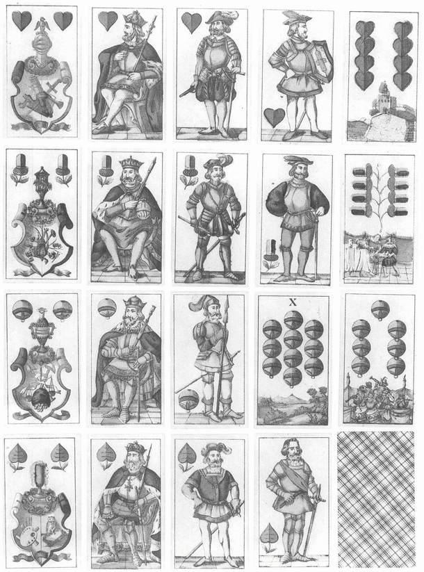 The Daus shows symbols of the student life or contemporary pleasure (acorns), symbols of arts and sciences (leaves), symbols of military or war (hearts) and agriculture or trade (bells).