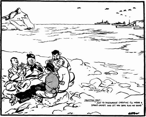 The Big Powers adopted a Non-Intervention agreement whereby they undertook not to send arms or men to either side in Spain. This did not stop the uninterrupted flow of "volunteers" and modern equipment to Franco from Italy and Germany, nor a less numerous entry and occasional consignments to the government from France and Soviet Russia. But France (Blum) hesitated under threats from Mussolini; and Britain (Eden) shrank from interference. It became obvious that Non-Intervention worked adversely to the government.
