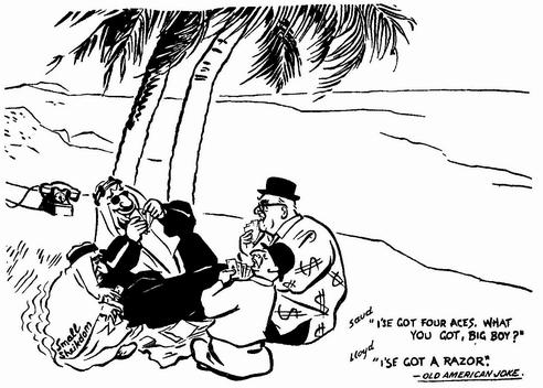 The delegation from the Chinese Communist Government which visited the UN proved to be tough. Mao Tse-tung's terms were the withdrawal of all foreign troops from Korea and Formosa and the acknowledgement of his Government's right to China's place in the UN. With the encouragement of the U S the UN declared China to be the aggressor in Korea. A difference of opinion arose between Austin and Jebb, U S and British delegates respectively, the latter holding that this might end all hopes of reaching a reasonable settlement.