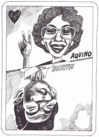 Corazon Aquino wins elections after massive pressure on Ferdinand Marcos...