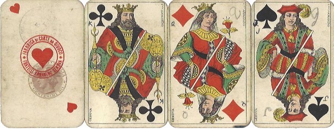 Description: The best thing about this deck is the ace of heart with the tax stamp of the Kingdom of Italy (Regno d'Italia) and the age (pre World War I).