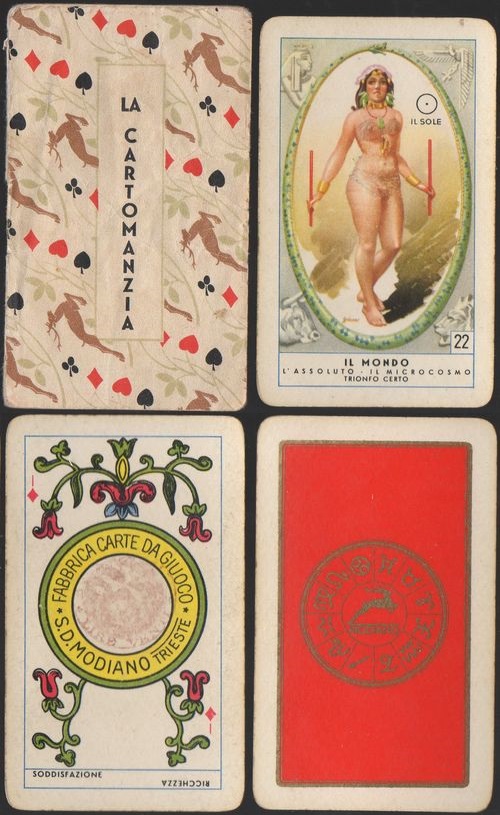 Description: modiano cartomanzia lusso 184 con bollo fiscale di lire venti tassa usata dal 7/1945 al 5/1947