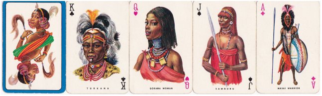 Description: ogni carta raffigura un personaggio di una tribù Africana. Al di sotto, il nome della tribù (in inglese). Each card depicts a character of an African tribe. At the bottom, the name of the tribe (in English)