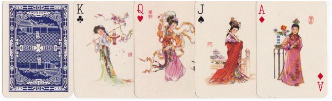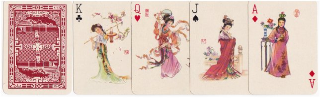 Description: Description: basato sulla novella cinese di Cao Xueqin, poeta del XVIII secolo. Ogni carta raffigura un'immagine di donna in costume cinese. Based on the Chinese novel by Cao Xueqin, poet of the 18th century. Every card represents a woman in Chinese dress.