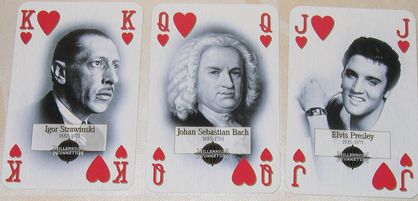 Description: Beschrijving : volledig kaartspel met op elke kaart een tekening van een belangrijk internationaal persoon uit de voorbije 2000 jaar