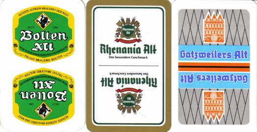 3 verschiede Bier Werbungen: Bolten Alt, Rhenania Alt und Gatzweilers Alt